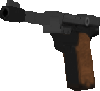 Single-Action 9mm Handfeuerwaffe. Magazin 9 Schuss. Kurzstreckenwaffe.